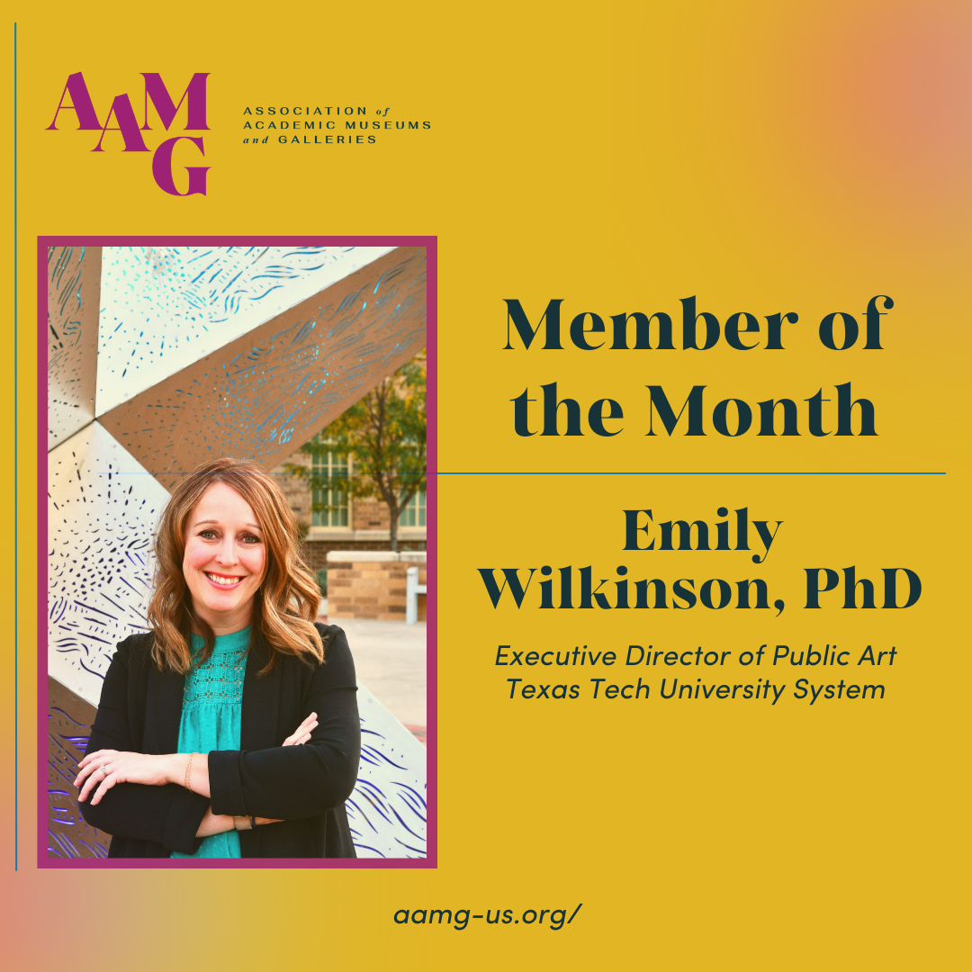 I work with a public art collection, which is a little different from an academic museum. But I love walking through campus and seeing our students’ reactions to the public art that surrounds them as they walk to and from class or other campus activities. I actually focused my PhD studies on how public art on campus can create a sense of belonging for our students and was amazed at how they viewed and interacted with the art on campus.